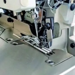 Máquina de Costura Industrial Interlock 5 fios, para tecidos em geral. Utilizada em costuras que precisam ser unidas com uma costura de reforço e ou refiladas para limpeza do tecido. Aplicada em quase todos os seguimentos têxteis, como: camisaria, uniformes, moda masculina, feminina, infantil etc.